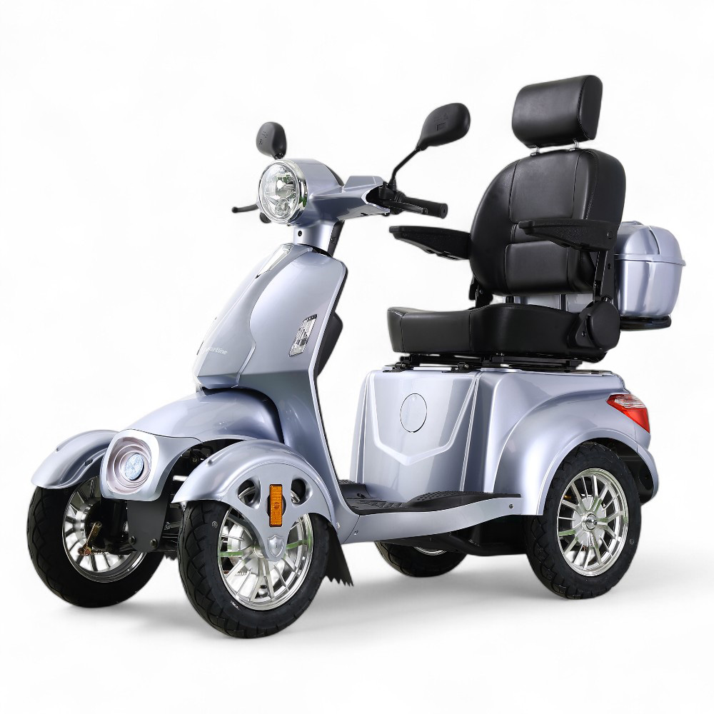 Ker gre za električni štirikolesnik, je delovanje vozila tiho in okolju prijazno. Poleg tega lahko skočite nanj brez vozniškega dovoljenja! Sedež je udoben in zahvaljujoč zložljivim naslonjalom za roke lahko udobno sedite, tudi če ste omejeni v gibanju. V zadnjem delu najdete 2 prostora za shranjevanje, kamor lahko enostavno shranite nakup ali manjšo prtljago.