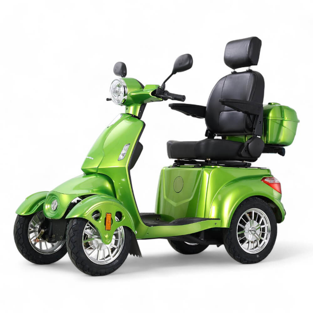 Ker gre za električni štirikolesnik, je delovanje vozila tiho in okolju prijazno. Poleg tega lahko skočite nanj brez vozniškega dovoljenja! Sedež je udoben in zahvaljujoč zložljivim naslonjalom za roke lahko udobno sedite, tudi če ste omejeni v gibanju. V zadnjem delu najdete 2 prostora za shranjevanje, kamor lahko enostavno shranite nakup ali manjšo prtljago.